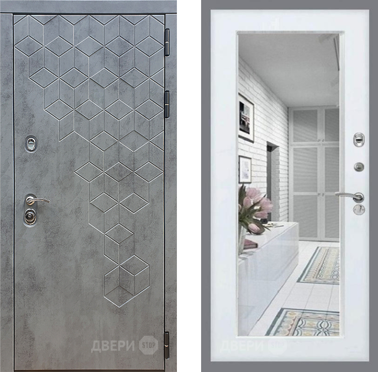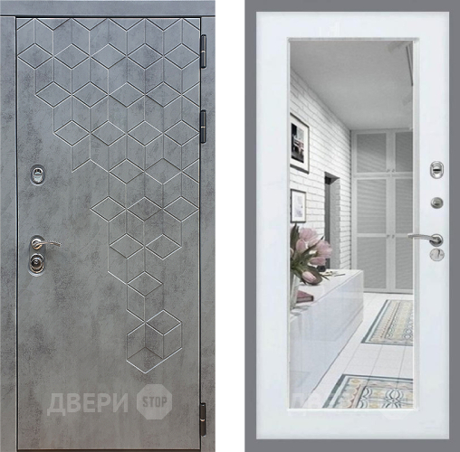Входная Дверь Стоп БЕТОН Зеркало Белый ясень 860x2050 мм