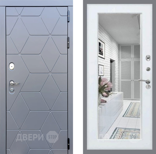 Входная Дверь Стоп КОСМО Зеркало Белый ясень 860x2050 мм